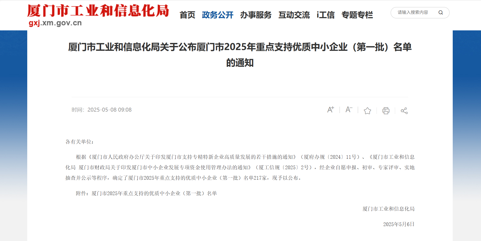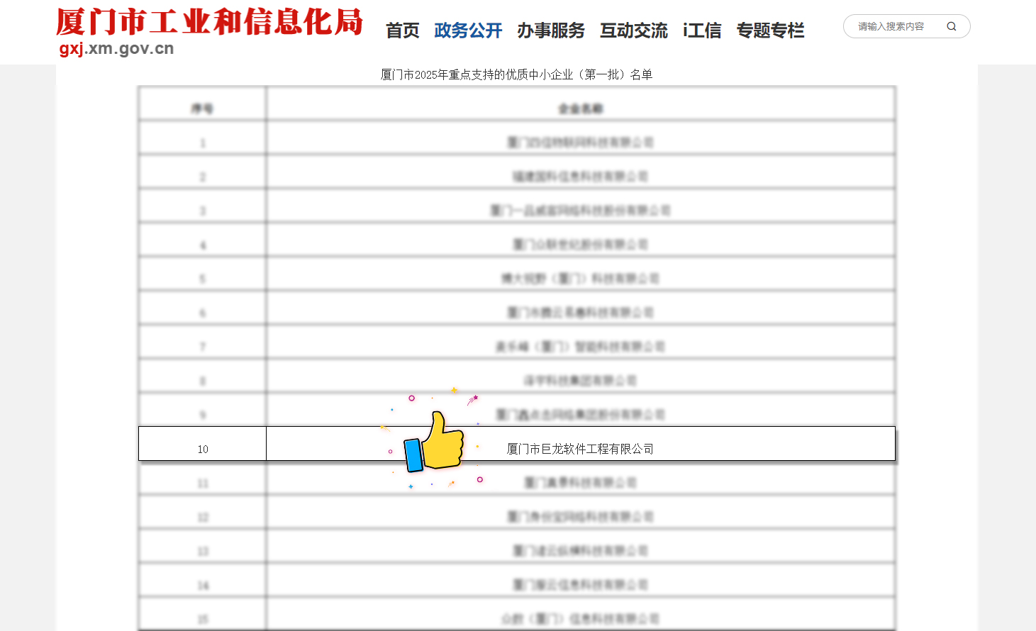 根據(jù)《廈門市人民政府辦公廳關于印發(fā)廈門市支持專精特新企業(yè)高質(zhì)量發(fā)展的若干措施的通知》(廈府辦規(guī)〔2024〕11 號)、《廈門市工業(yè)和信息化局 廈門市財政局關于印發(fā)廈門市中小企業(yè)發(fā)展專項資金使用管理辦法的通知》(廈工信規(guī)〔2025〕2 號),經(jīng)過企業(yè)自愿申報、初審、專家評審、實地抽查并公示等一系列嚴格規(guī)范的程序,廈門市 2025 年重點支持的優(yōu)質(zhì)中小企業(yè)(第一批)名單正式公布,廈門市巨龍軟件工程有限公司榮耀入選,成為 217 家獲此殊榮的企業(yè)之一!